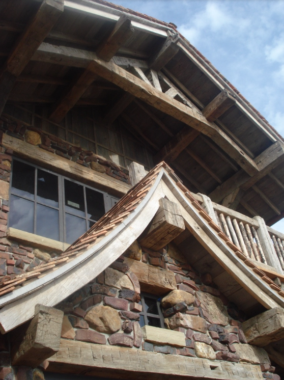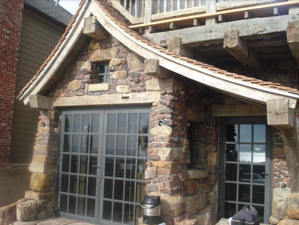 The outer structure showcases steep rooflines, timber accents, and natural stone, creating a historic character that feels both authentic and enduring.